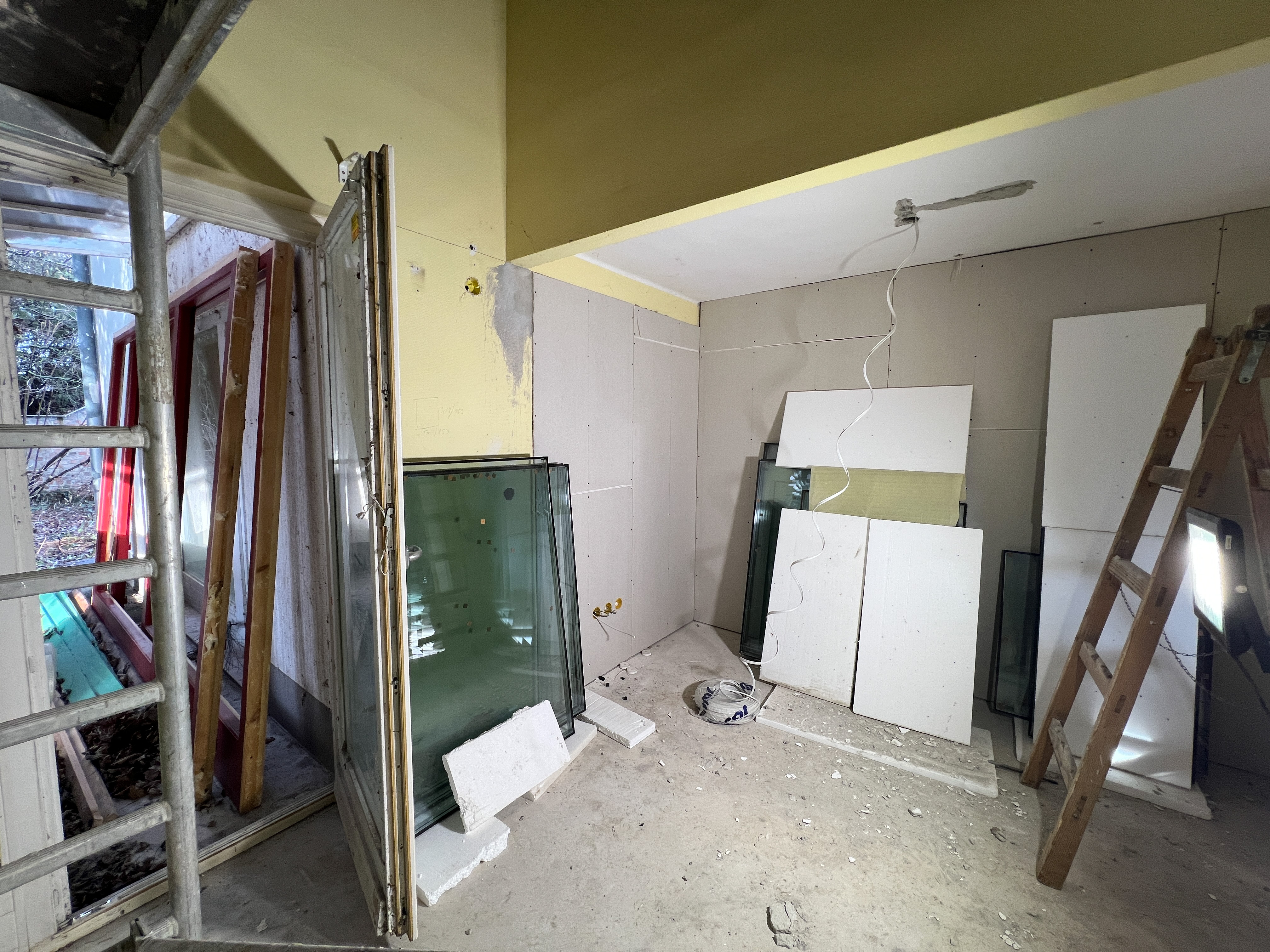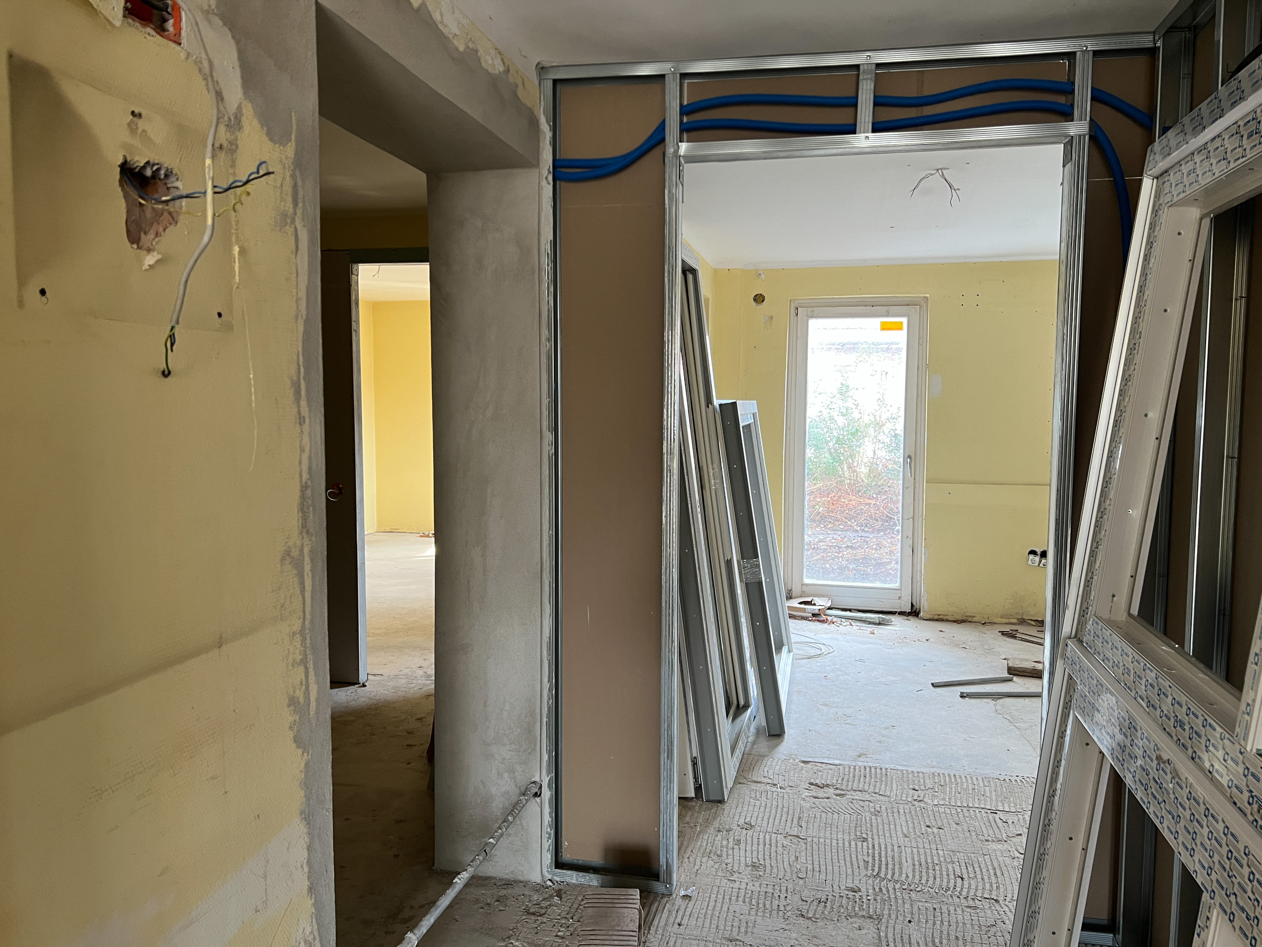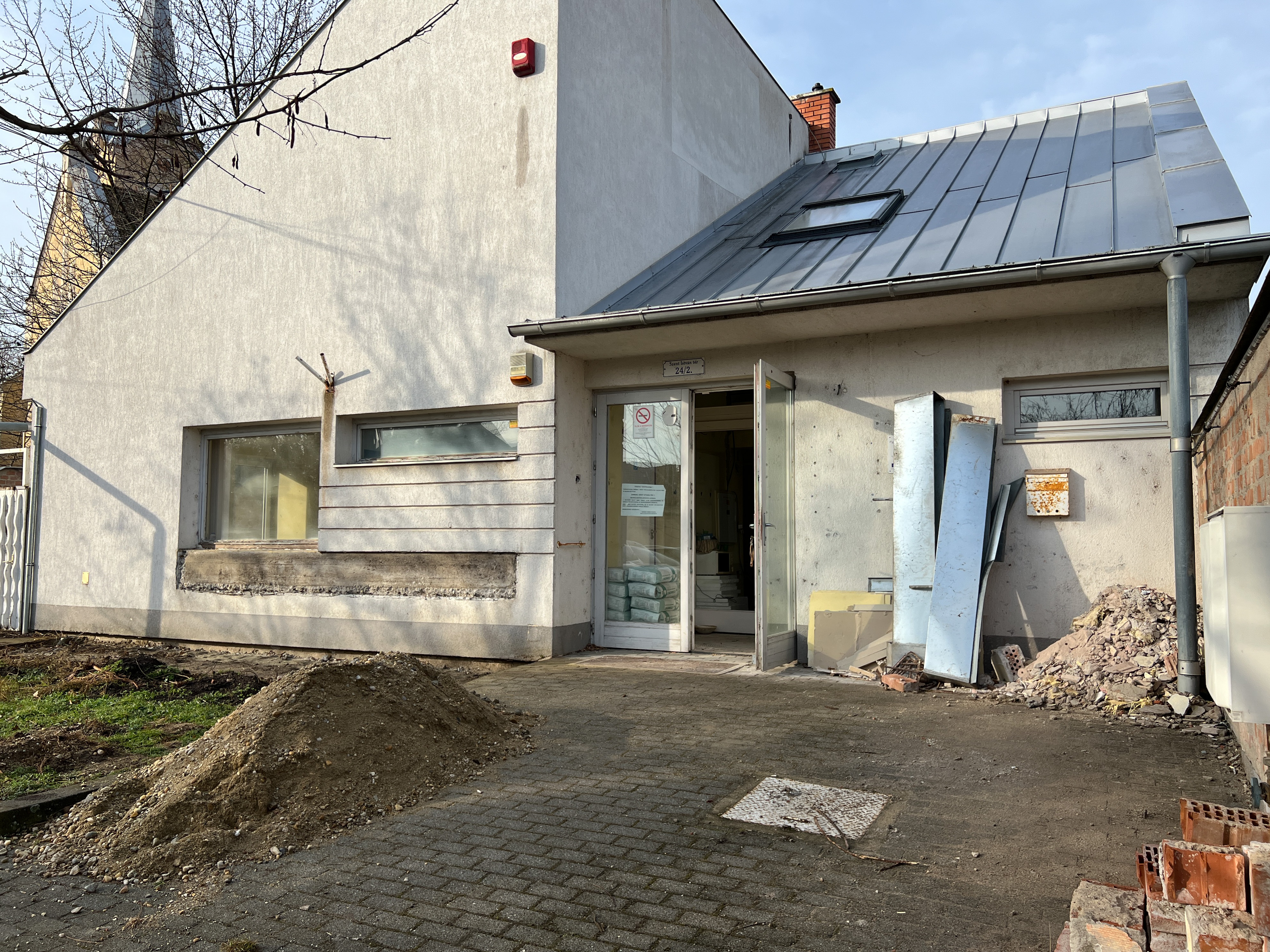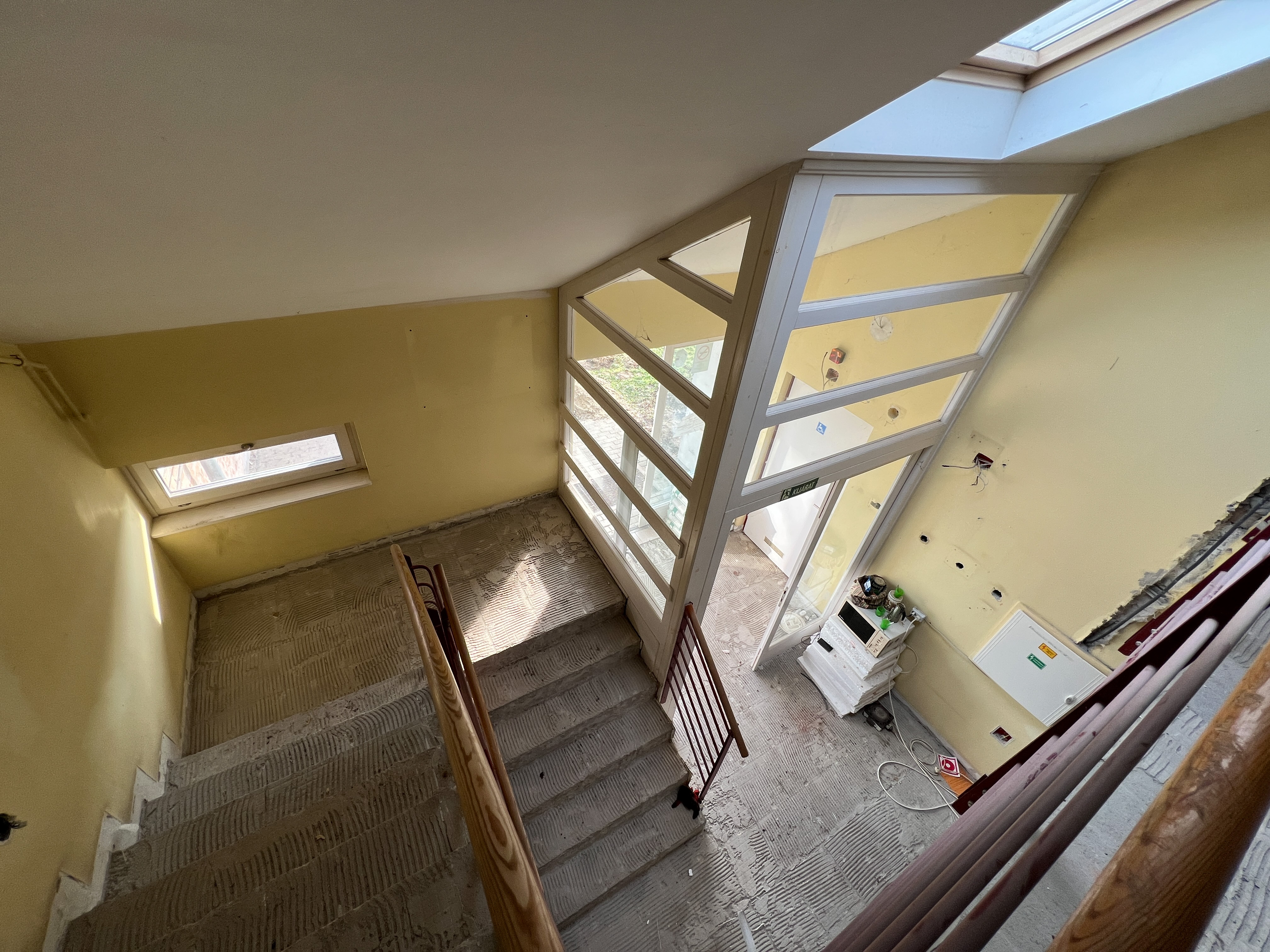 • A meglévő épület belső, alaprajzi átalakítása, új irodahelyiségek, tárgyaló és egyéb új helyiségek, takarítószertároló kialakítása (meglévő belső válaszfalak, ajtók bontása, új válaszfalak, ajtók beépítése).