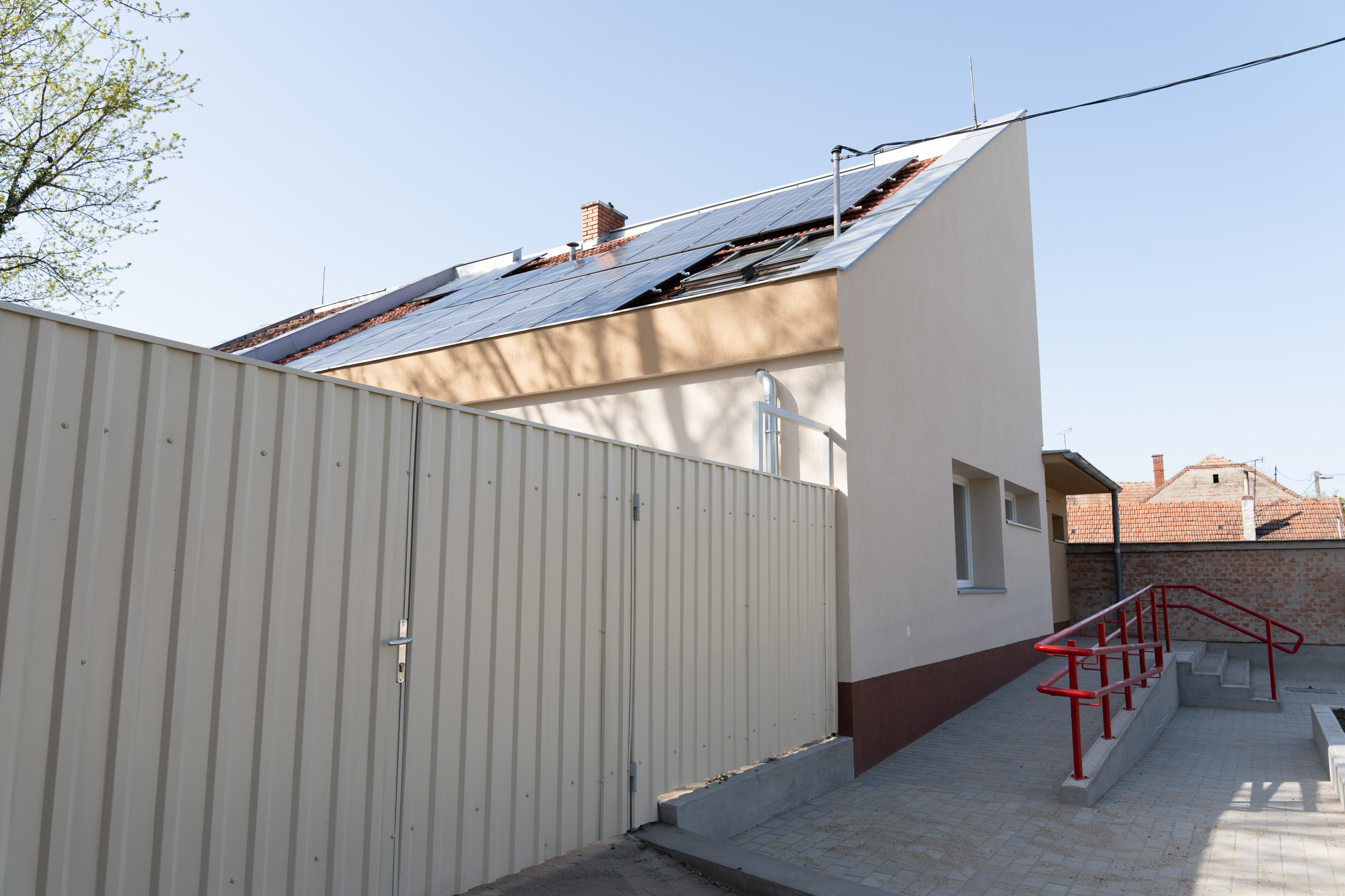 • Megújuló energiaforrások kialakítása: a tetőn új fotovoltaikus napelemes HMKE rendszer kiépítése.